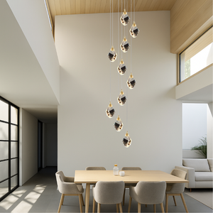 Introduce elegance to high-ceiling areas with a 10-light crystal chandelier arranged in a vertical cascade. Featuring a shimmering crystal surface and multiple light points, it creates an eye-catching focal feature for staircases, mezzanines, or entryways.