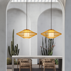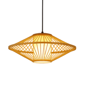 Japanese Bamboo Pendant Lamp - Amethis - Natural Rattan Shade - Adjustable Hanging Cord