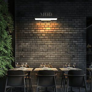 This horizontal exterior light fixture provides directional illumination in both upward and downward angles. Designed for surface mounting, it fits entryways, patios, and external wall accents. Its enclosed casing allows for vertical or horizontal setup, offering a structured visual layout without additional components.