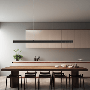 Designed to illuminate countertops, tables, or corridors, this pendant light features a slim bar structure that suits modern interiors. The suspended LED unit delivers focused light with an adjustable hanging length. Suitable for dining spaces, kitchens, and work areas where overhead lighting is needed in a narrow format.