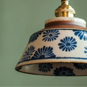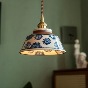Retro Japanese Ceramic Pendant Lamp - KairoLite - Hand-Painted Pattern - Adjustable Height