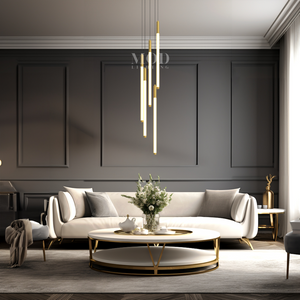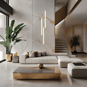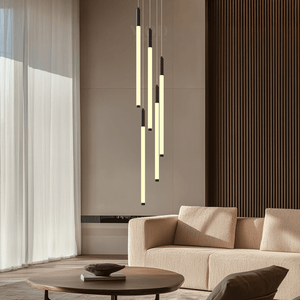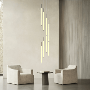 - Cascading form: Multi-tier structure creates a downward lighting flow.