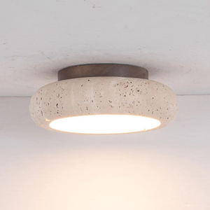 Travertine Retro Ceiling Lamp - LumaStone - Natural Finish - Warm Illumination